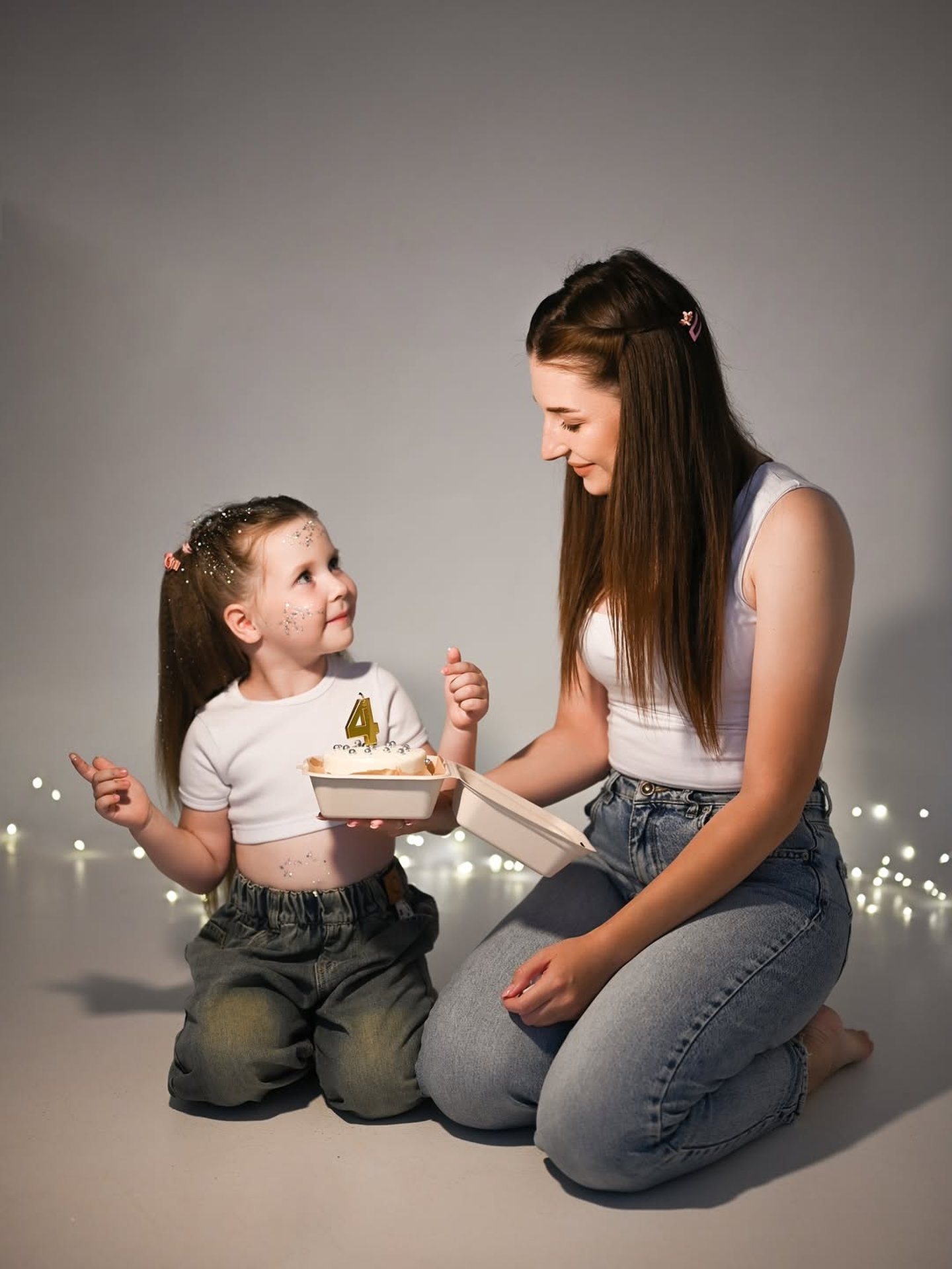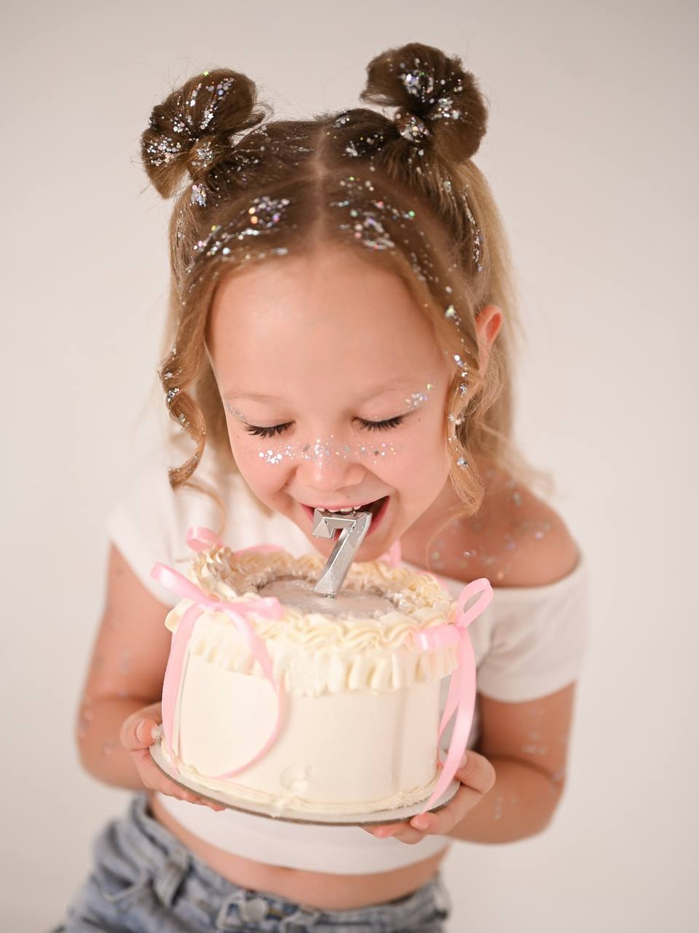 Такую съемку можем организовать по индивидуальным запросам в студии с циклорамой .Торт и блестки приносим и делаем кадры для именинников.